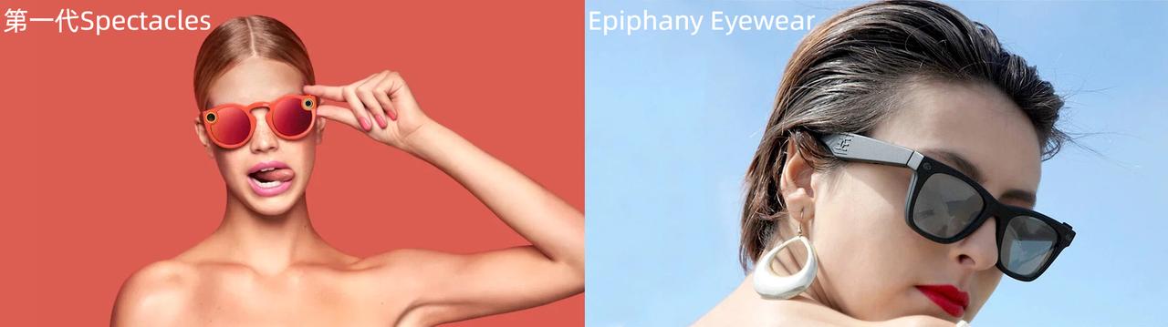 2014年的Snap(更名前为Snapchat)收购了当时开发Epiphany Eyewear智能眼镜的开发商Vergence Labs,让他们内部开发类似但更加精致的Snapchat眼镜产品。Epiphany Eyewear智能眼镜可以录制广角视频,主要是通过镜框侧边栏上的触觉按钮来控制。