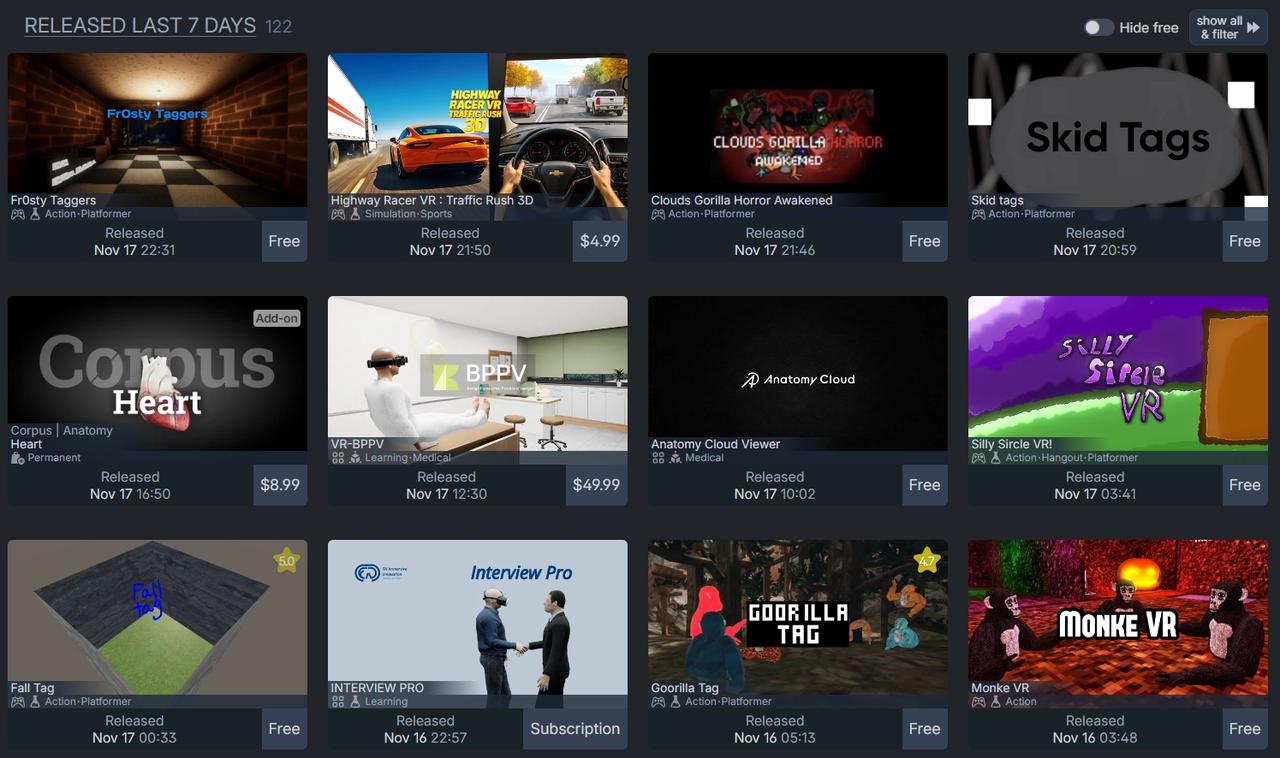 平台层面的算法机制也加剧了这种失衡。Meta的推荐逻辑更偏向“留存率”和“交互时长”,这让一批以社交、娱乐为主的轻体验类免费游戏获得流量红利,却在无形中挤压了中重度内容与实验性作品的生存空间。与此同时,Quest系列产品在假日季吸引了大量年轻玩家,使得“免费+内购”模式成为主导,进一步推动了快产快消的内容循环。