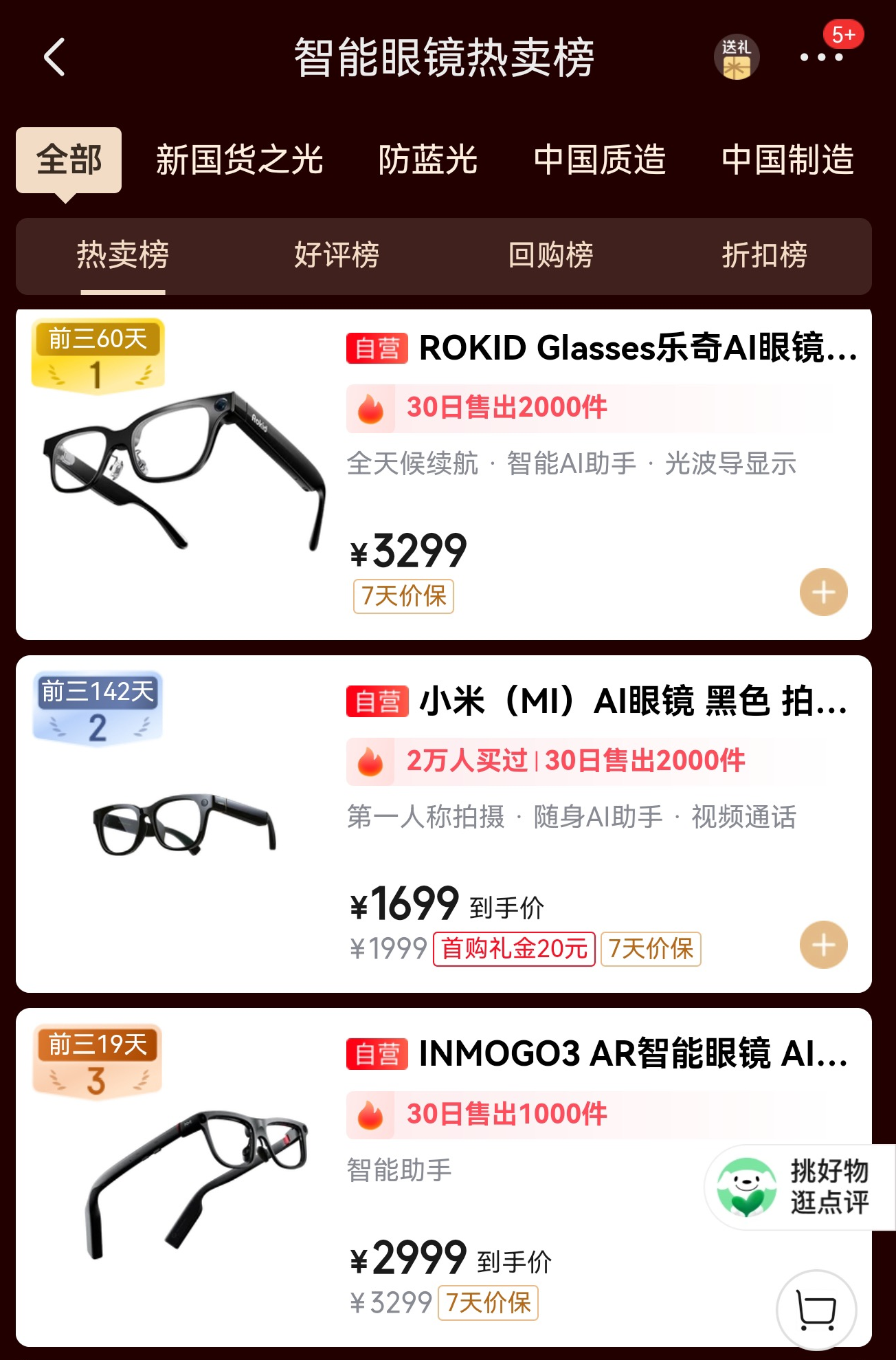 销量方面,今年618以及双11期间智能眼镜市场均传来喜讯:京东数据显示,今年618期间,AI眼镜成交量同比增长7倍、AR眼镜用户数同比增长70%;天猫销售数据显示,今年双11期间,平台智能眼镜品类成交额同比暴涨2500%。