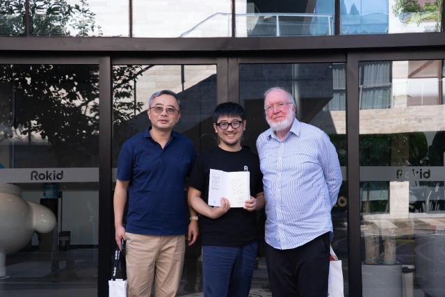 凯文·凯利到访Rokid乐奇,从左到右分别为财经作家吴晨、Misa、凯文·凯利