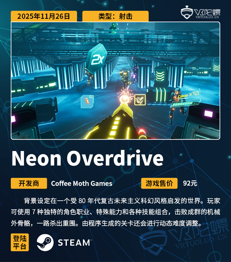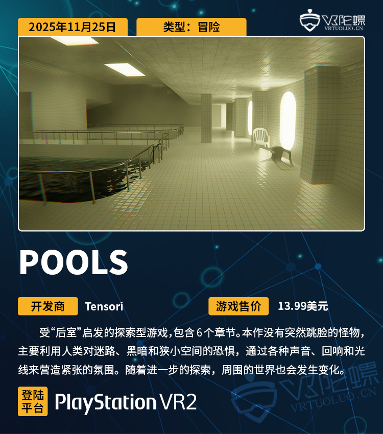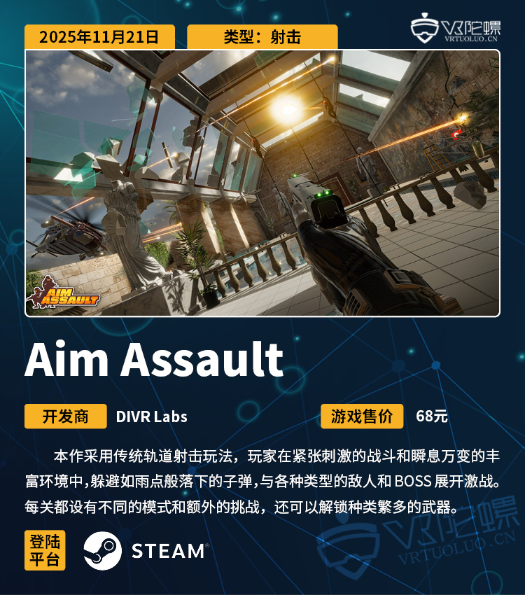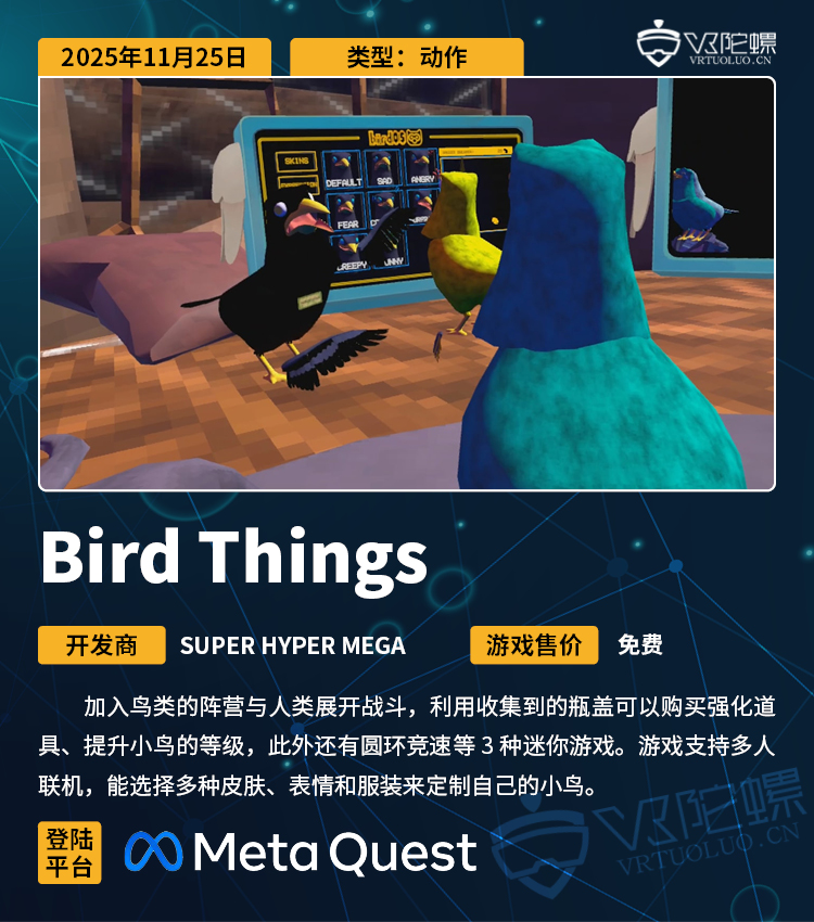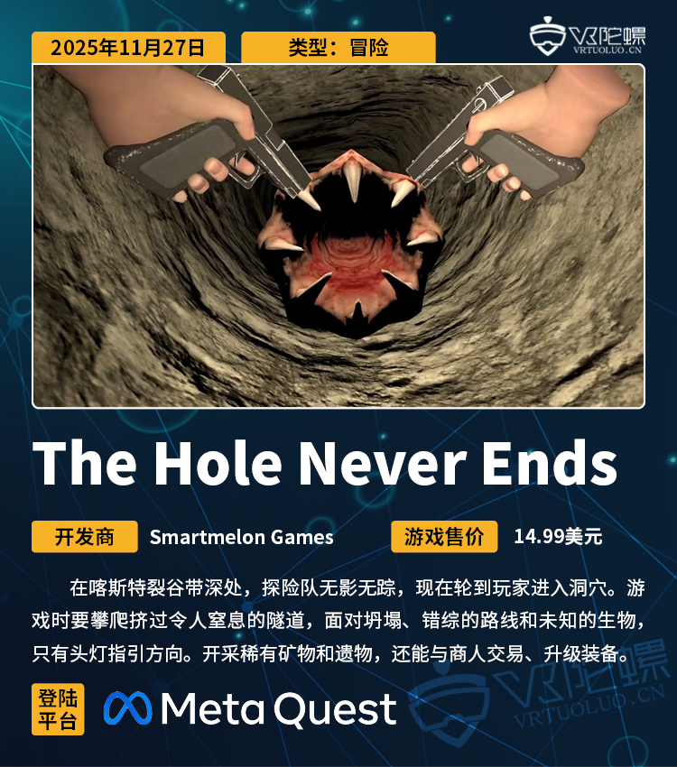 VR游戏周报·第171期,统计11月21日~11月27日期间上线的VR游戏,新作介绍共计8款,后文按照发售时间排序。截至2025年11月27日,各主要VR平台的内容数量如下: