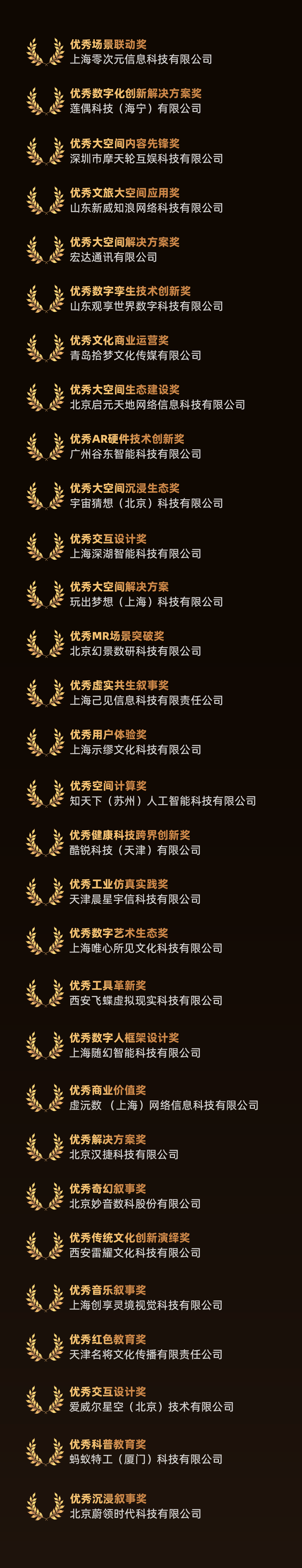 三等奖:北京森灵空间文化科技有限公司、上海辛卡司传媒科技有限公司、深圳赛步创新科技有限公司