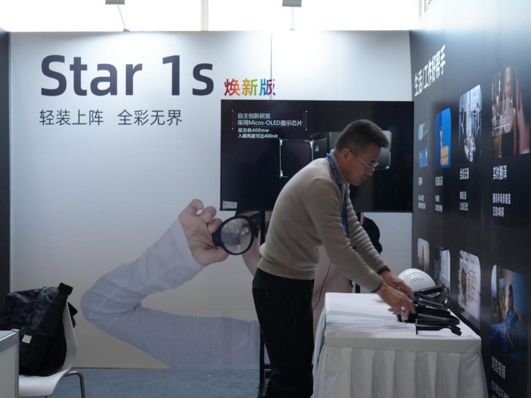 谷东智能本次展出星彩Star 1S焕新版AR智能眼镜,搭载谷东自研的全彩阵列光波导模组M2026N,重量控制在89克,配合防滑鼻托设计,实现长时间佩戴的舒适与稳定。