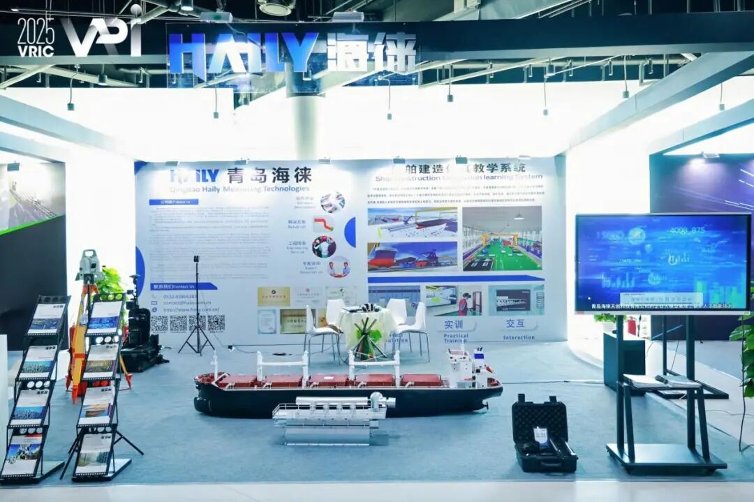 现场体验中,海徕天创展示了其自研的VR建造精度仿真教学系统。通过VR设备进入虚拟船坞,可在三维空间中自由漫游,观看造船流程演示,并进行精度策划与安全训练等操作。系统结合虚拟现实与数字孪生技术,交互感强、场景真实,支持多设备接入,已在多所院校和船舶企业投入使用,用于技能教学与专业培训。