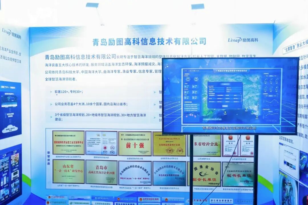 励图高科现场带来了“水质哨兵”溶解氧传感器及“北冥智渔”“海纳千帆”两大AI模型。其中,“水质哨兵”主打高精度、低成本的水质实时监测;“北冥智渔”面向养殖全周期管理,支持监测、预警与智能投喂;“海纳千帆”则用于渔港船舶识别与风险预警,提升港口安全与运营效率。