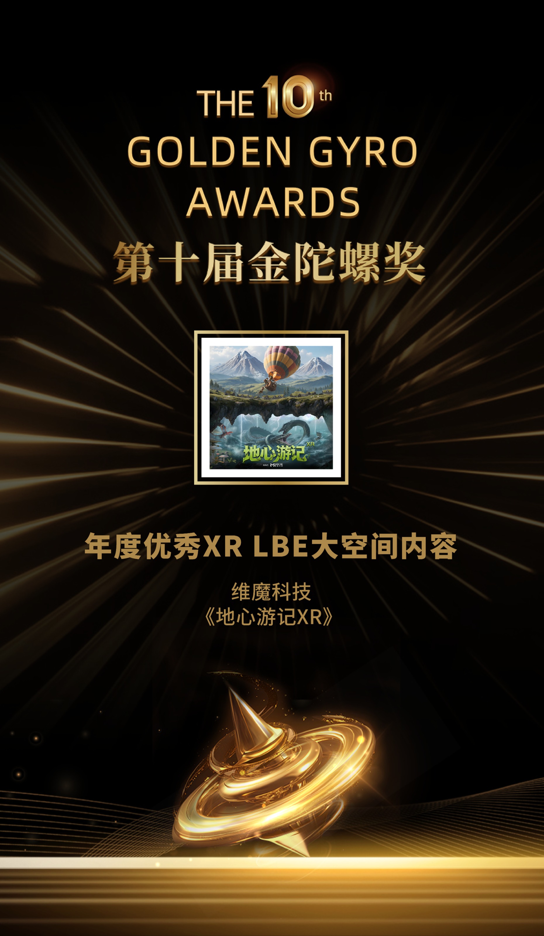 经历为期3个月的线上投票、专家评审,维魔科技 《地心游记XR》荣获第十届金陀螺奖“年度优秀XR LBE大空间内容”。