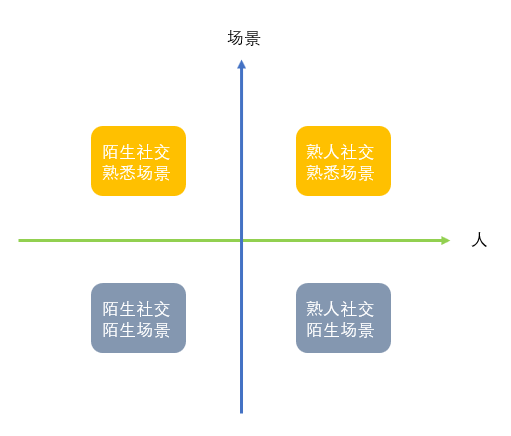另外,元宇宙社交相较于常规线上社交,会多出一个场景维度。如果以下图划分,目前元宇宙社交平台多处于第三象限,即陌生社交,并且里面大部分也是初次踏足的陌生场景,这就导致元宇宙社交会给人一种冰冷以及疏离感。