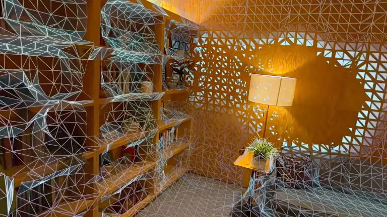1、粗略扫描。沿着房间边缘缓慢走动扫描环境,这时候MR画面会叠加三角形面片用以表示当前已经扫过的区域;