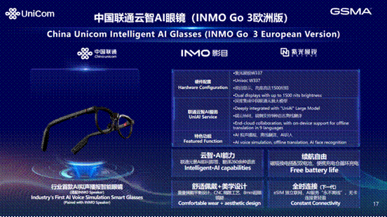 此次INMO Go 3欧洲定制版在MWC2026的发布,是影目INMO全球化战略的关键落地,更是影目INMO携手生态合作伙伴深化产业链协同的重要实践。影目INMO作为AI眼镜赛道的领军企业,始终坚持以技术创新为核心,以用户需求为导向。通过与中国联通、紫光展锐的深度合作,影目INMO整合了硬件研发、算力支撑、大模型服务等全产业链优势,打造出兼具硬核性能、舒适体验与全场景能力的云智AI眼镜产品,不仅让影目INMO的产品与技术走向欧洲市场,更推动AI+eSIM云智终端合作的 “中国方案” 走向全球。