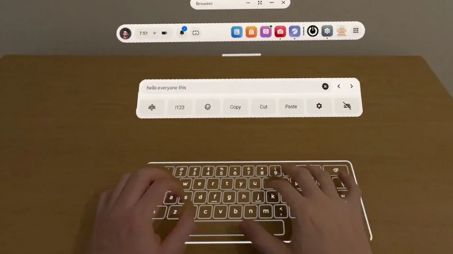 值得一提的是,今年2月,Quest最新系统推送了一项名为Surface Keyboard(平面键盘)的功能,启用时,设备会在桌子等地方映射虚拟键盘以方便用户进行打字输入。Phoenix设备小巧便携,如果再配合Surface Keyboard功能,它应该在差旅等轻度办公场景下会有不错的使用体验。
